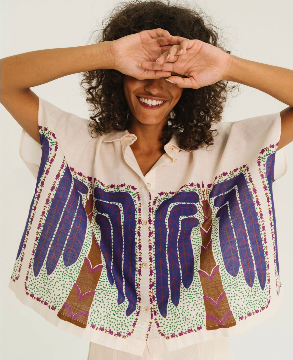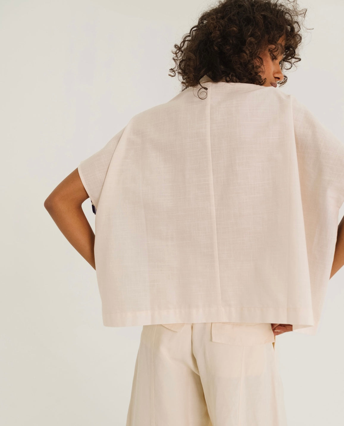 Une pièce douce, presque essentielle. Sa nuance naturelle apaise la silhouette et traverse les saisons sans jamais se démoder. La coupe simple laisse place à la matière et au tombé. C’est la chemise que l’on porte près de soi, comme une seconde peau, du matin au soir.