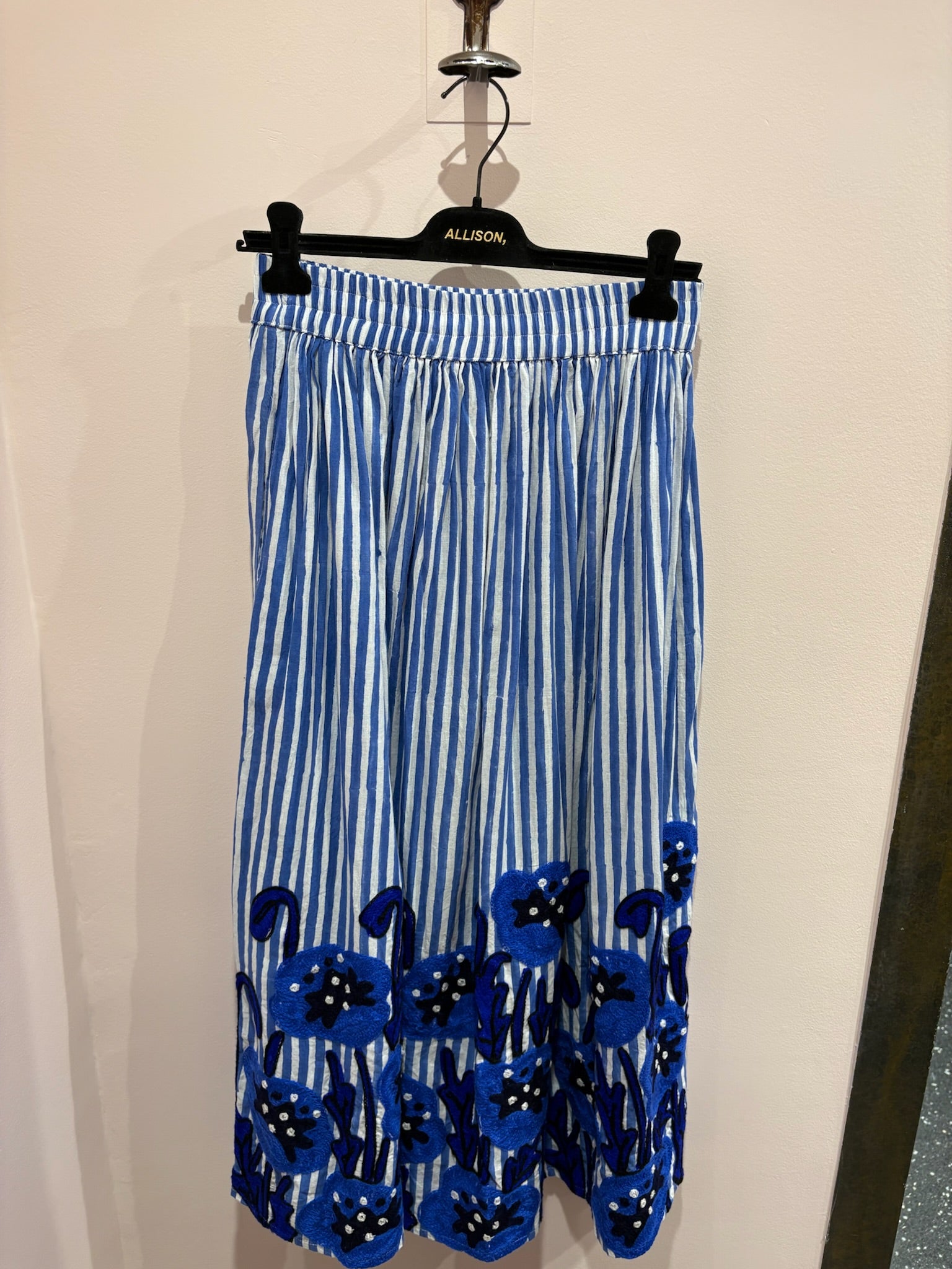 Jupe brodée rayures bleues & fleurs cobalt (selene) – XIWIKJ