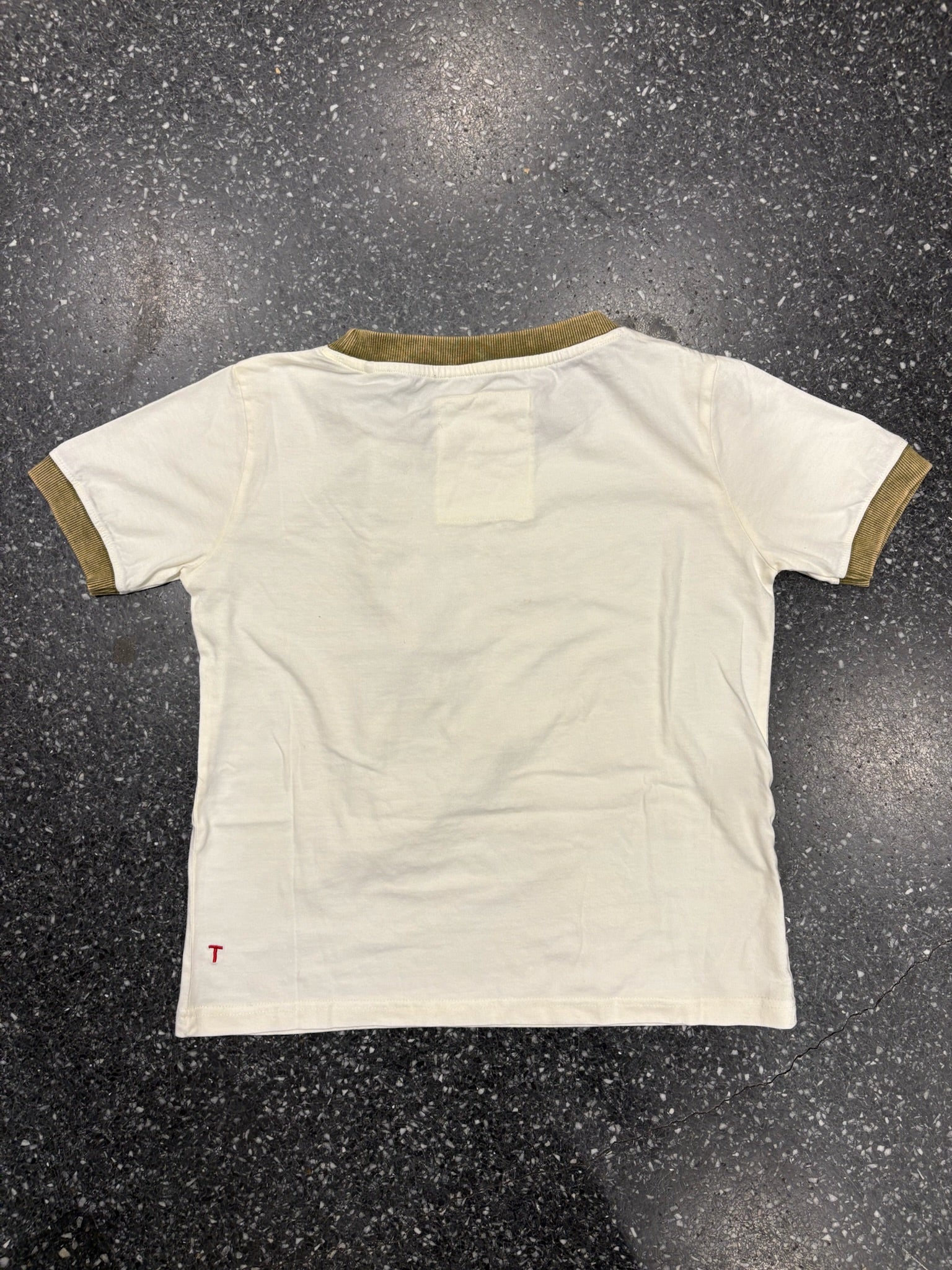 Sa coupe droite légèrement ample et ses finitions contrastées au col et aux manches rappellent les ringer tees vintage américains, typiques des années 70.