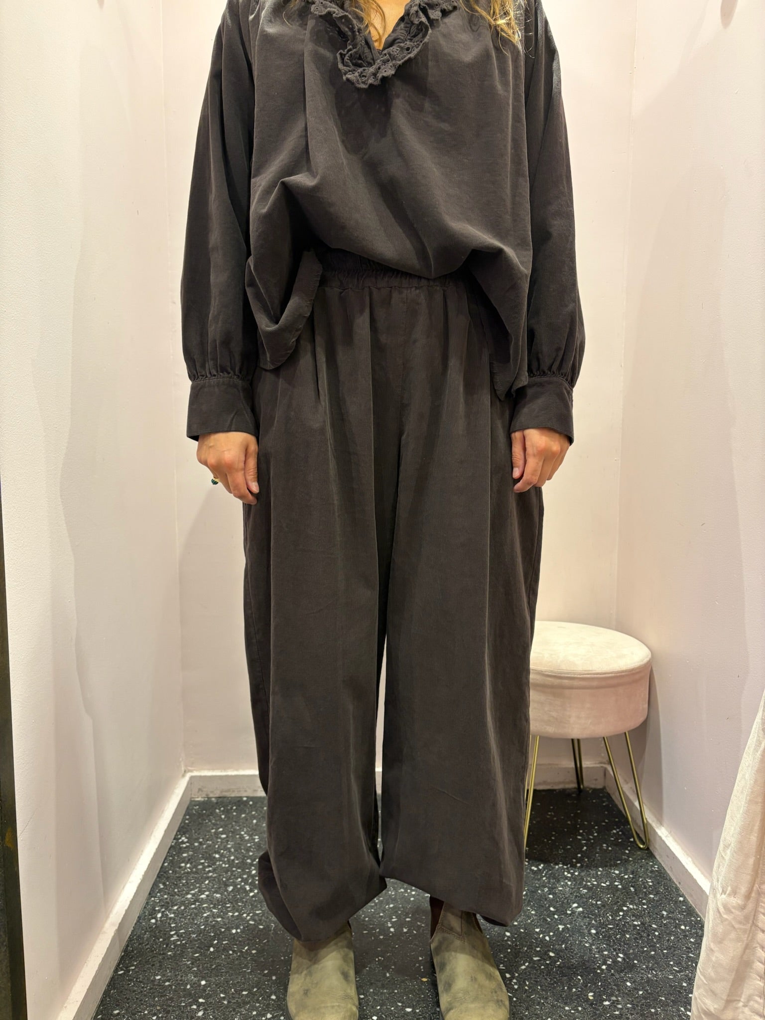 Le sarouel en velours est la pièce cocooning et tendance qu’on aime porter sans se poser de questions. Avec sa matière velours ultra-douce, sa taille élastique et sa coupe ample, il offre un confort absolu tout en gardant une allure mode. Facile à associer avec un sweat oversize, une chemise fluide ou un simple top ajusté, il devient vite un essentiel du dressing.