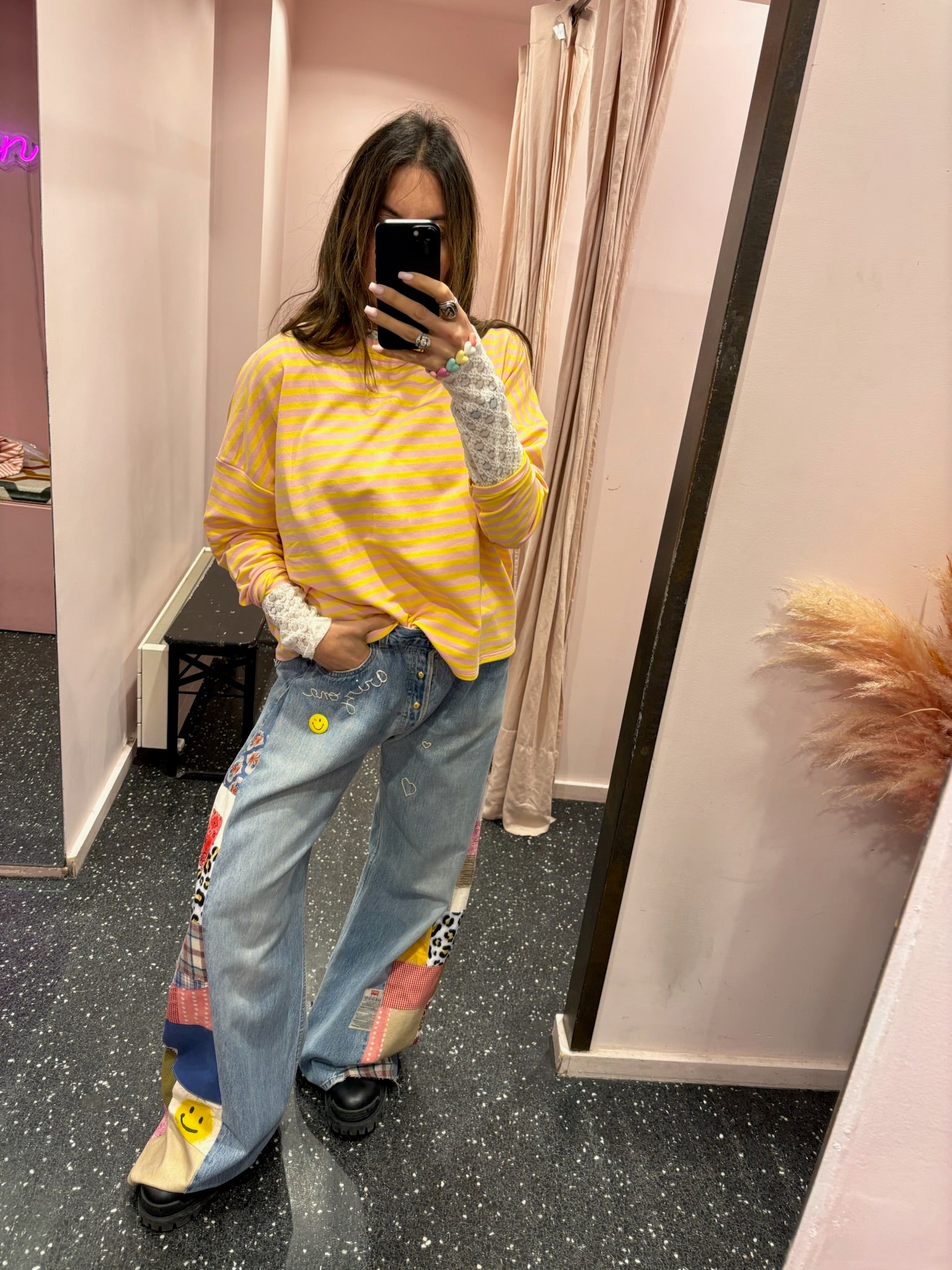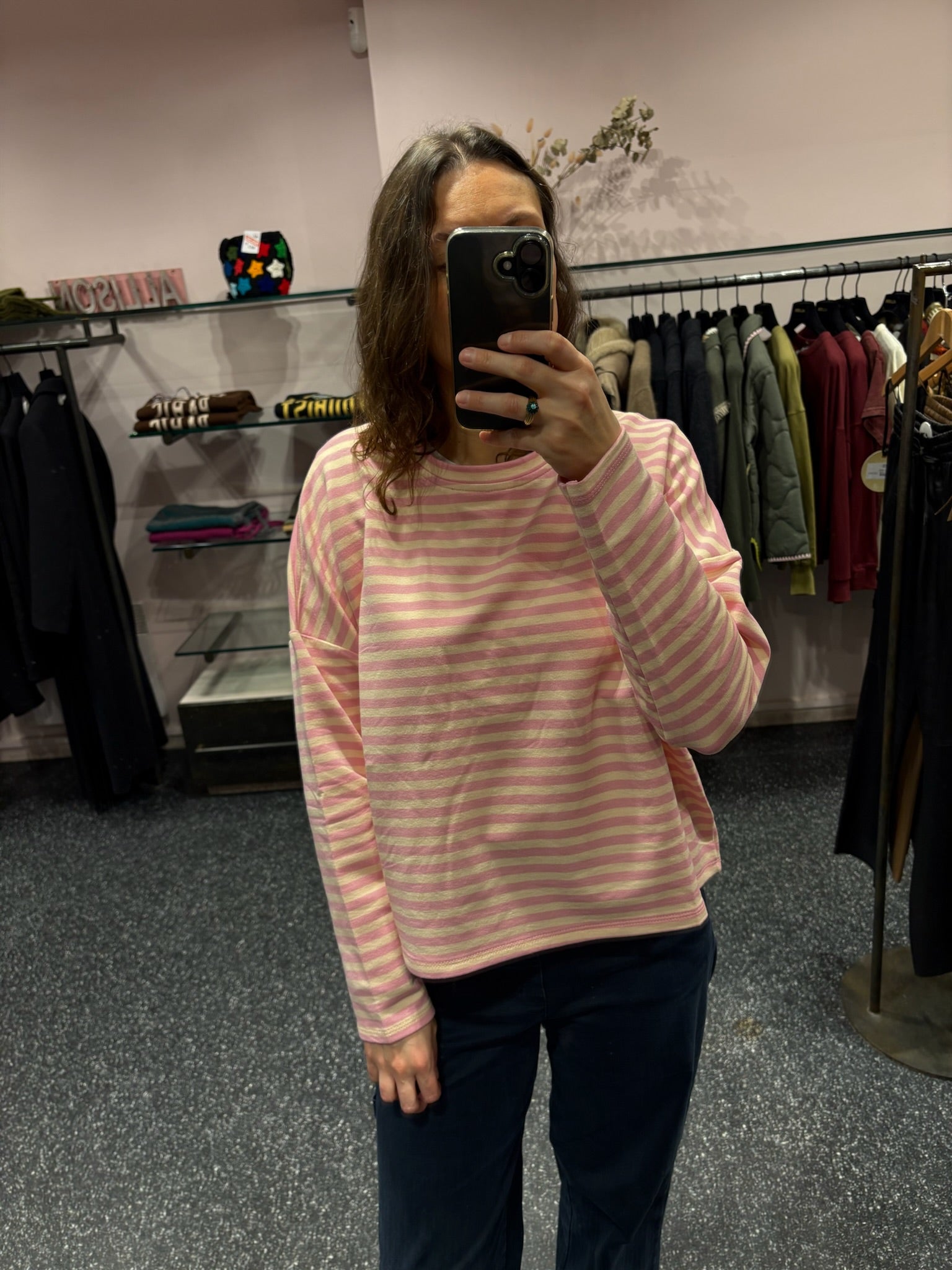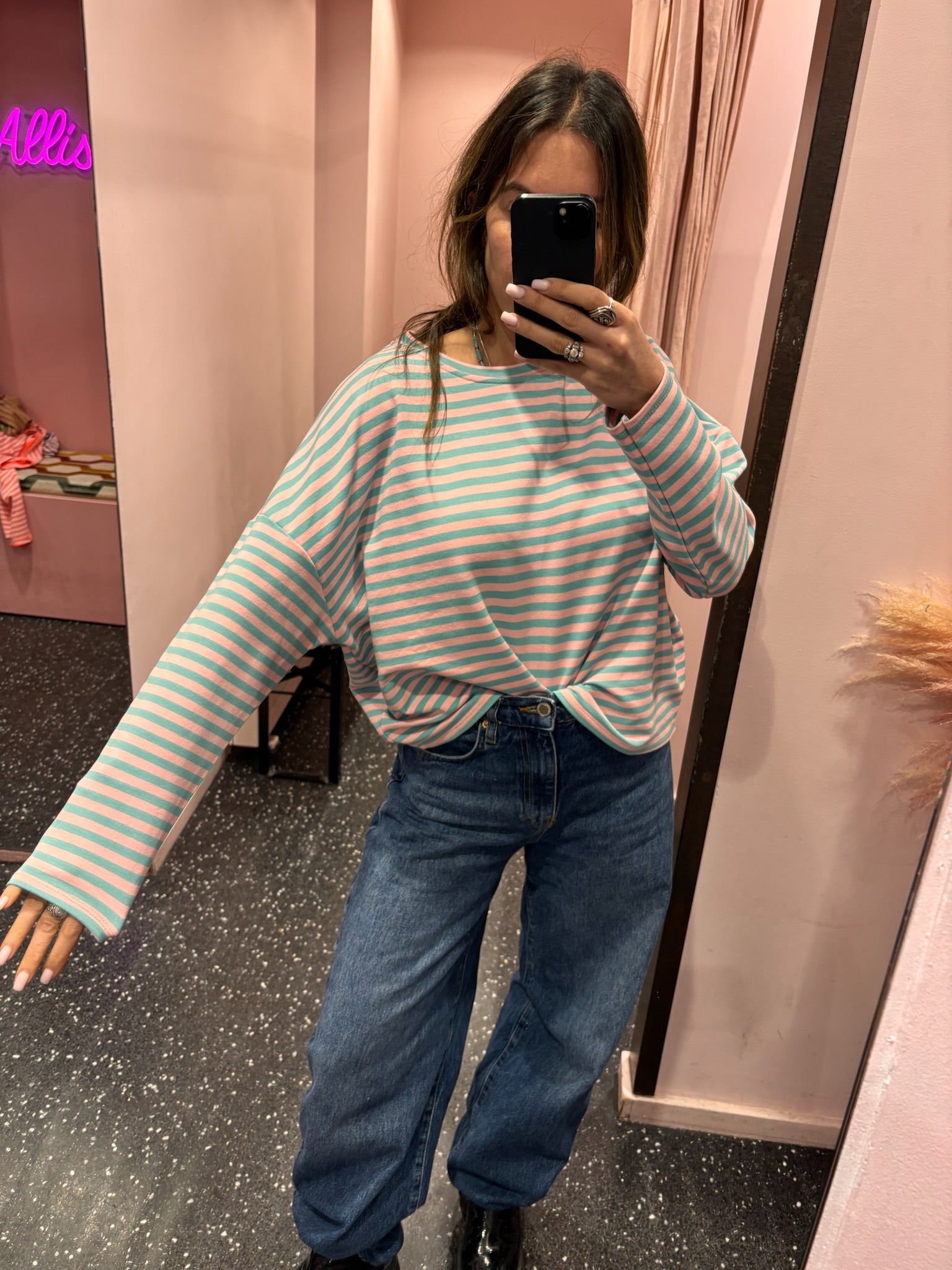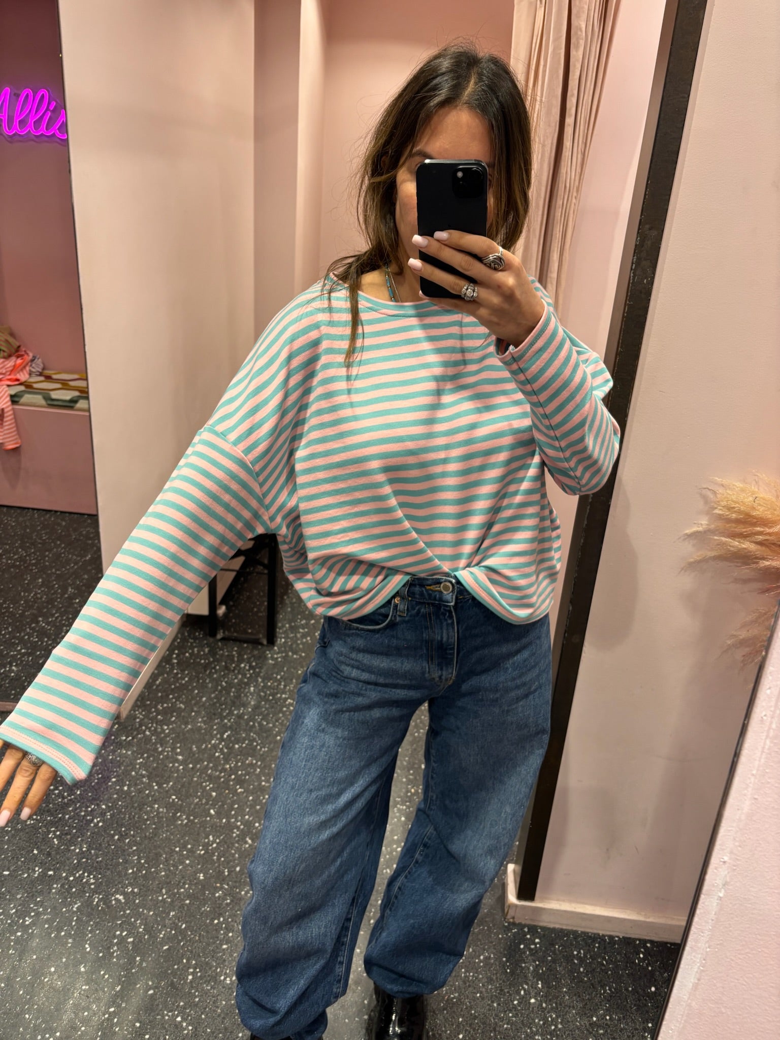 T-shirt oversize à manches longues confectionné en coton épais de haute qualité. Sa matière dense assure une excellente tenue dans le temps tout en restant confortable au quotidien. Les rayures apportent une touche graphique intemporelle, facile à intégrer dans un vestiaire casual ou plus structuré.