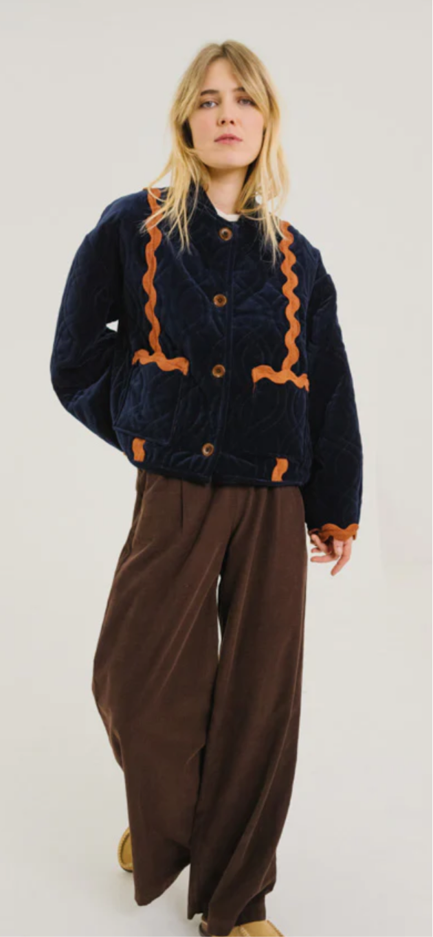 Parce qu’elle réussit à être à la fois confortable et sophistiquée, avec ce twist de style qui attire l’œil. On adore son velours doux, sa coupe ronde originale et ses détails contrastés qui la rendent unique. C’est la veste qui habille un jean simple comme une robe plus élégante, sans jamais perdre son caractère affirmé.