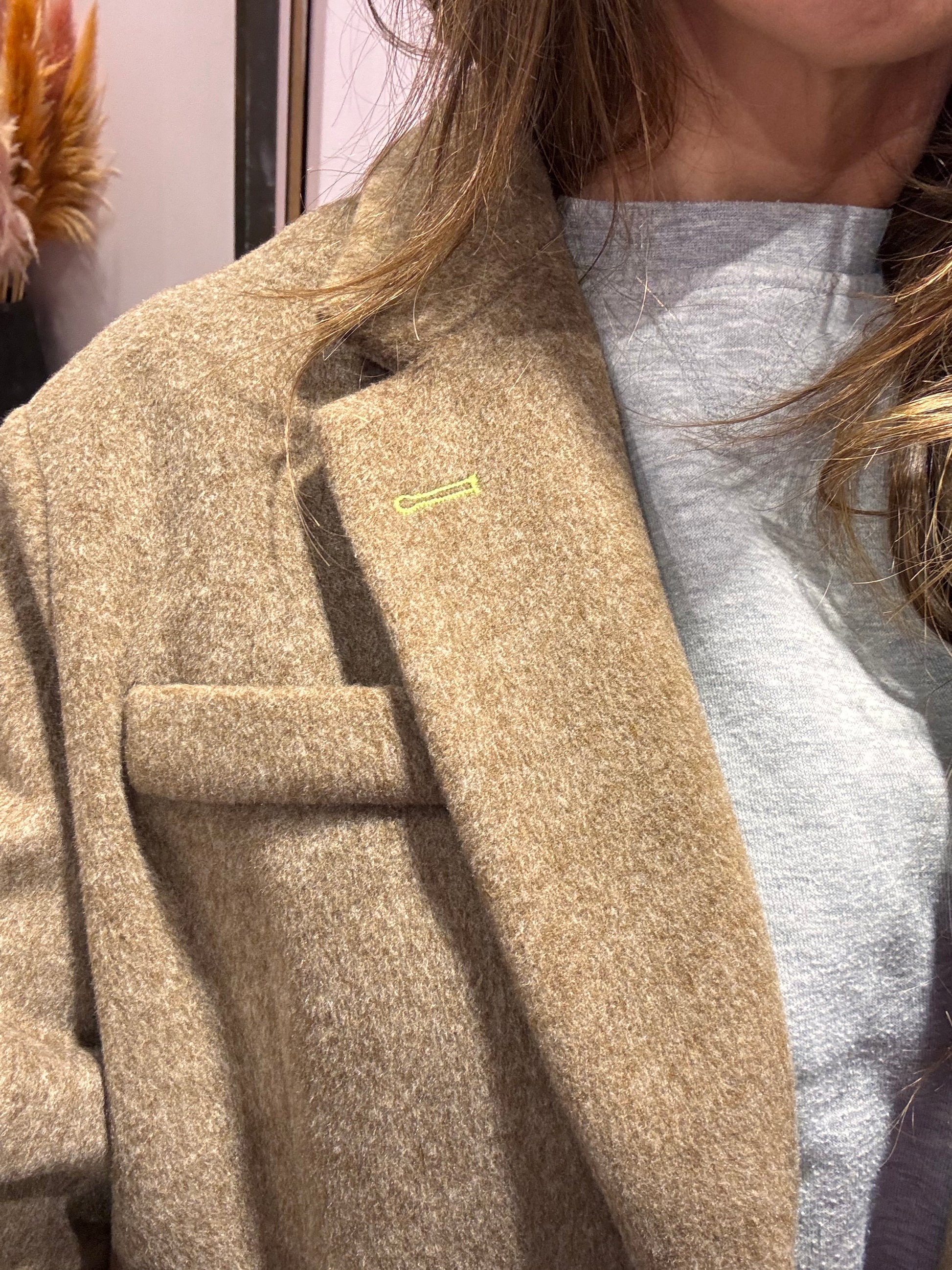 Une veste au charme intemporel, dans une teinte camel chaude et raffinée. Sa texture effet lainage évoque le confort de la laine tout en restant légère et fluide. L’intérieur contrasté, dans un beige soyeux, apporte une touche de douceur et d’élégance.