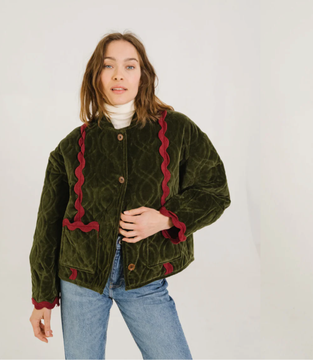 Parce qu’elle réussit à être à la fois confortable et sophistiquée, avec ce twist de style qui attire l’œil. On adore son velours doux, sa coupe ronde originale et ses détails contrastés qui la rendent unique. C’est la veste qui habille un jean simple comme une robe plus élégante, sans jamais perdre son caractère affirmé.
